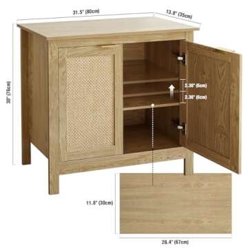 Giluta Sideboard Buffet Cabinet, Farmhouse Kitchen Cabinets with 2 Rattan Doors, 30''H Boho Cabinet for Entryway