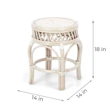 Ginger Handmade Rattan Wicker Stool Fully Assembled White Wash