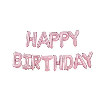 Ginger Ray Pastel Pink Happy Birthday Party Balloon Bunting Decoration Banner No Helium Needed, 12 x 16 Inch