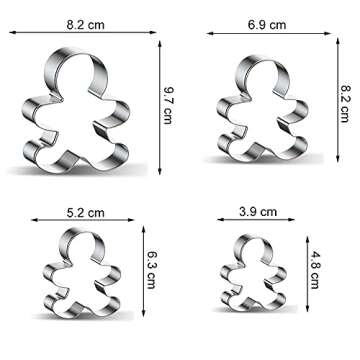 Gingerbread Man Cookie Cutter Set - 4 Pieces Assorted Sizes for Christmas Baking - Stainless Steel Azflyife