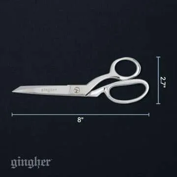 Gingher 8" Serrated Dressmaker's Fabric Scissors with Protective Sheath - 8" Stainless Steel Shears - Sharp Knife Edge Fabric Scissors - Silver