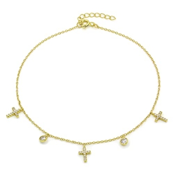 Show more Introducing the Giorgio Bergamo 925 Sterling Silver Gold Plated Micro Pave Cross Religious Charm Anklet, where elegance meets versatility! Crafted from premium .925 sterling silver, this stunning anklet features a beautifully designed micro pave cross charm, radiating exquisite charm and sophistication. Whether you're dressing up for a formal event or going for a casual day out, this anklet is the perfect accessory that complements any outfit. Its minimalist yet trendy design makes it easy to layer with other jewelry pieces, allowing you to express your unique style seamlessly.