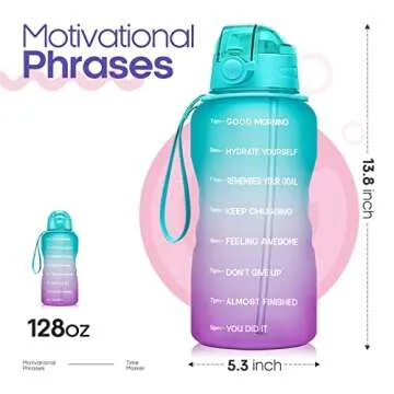 Giotto Large 1 Gallon/128oz Motivational Water Bottle with Time Marker & Straw,Leakproof Tritan BPA Free Water Jug,Ensure You Drink Enough Water Daily for Fitness,Gym and Outdoor-Green/Purple