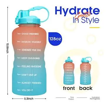 Giotto Large 1 Gallon/128oz (When Full) Motivational Water Bottle with Time Marker & Straw, Leakproof Tritan BPA Free for Fitness-Orange/Green Gradient