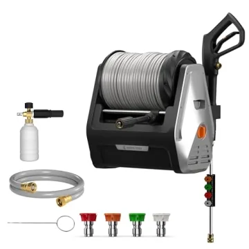 Included with the pressure washer is a robust 100 ft retractable hose, providing ample length for covering large areas without the hassle of tangling or damaging the hose. The retractable system means you can quickly store it away, protecting it from kinks and wear, saving you precious time during both operations and storage!