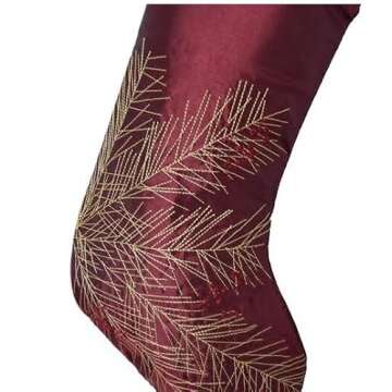 Show moreElevate your holiday cheer with the Gireshome Set of Two Hot Deal Burgundy Faux Silk Deluxe Berry Embroidered Stockings. These exquisite stockings, measuring 10" x 18", are not just decorations but an embodiment of festive luxury. Crafted with meticulous attention to detail, the burgundy hue combined with dazzling handcraft pintuck detailing and sparkling sequins creates a visual feast that instantly enhances your Christmas decor. The soft faux silk fabric echoes warmth and elegance, ensuring that your holiday setting feels both inviting and stylish. These stockings are perfect for hanging by the chimney with care, ready to hold all your treats while adding a stunning touch to your festive celebrations.