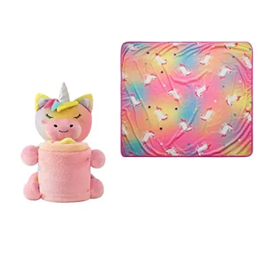 Girl's Unicorn Stuffed Animal Plush Blanket Set - Kids, Security Throw, Snuggle Pet & Comfort Sleeping Toy, Pink