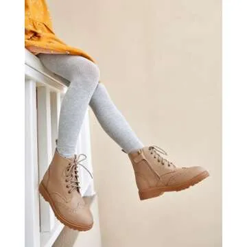 Show more Introducing the Girls Ankle Boots Lace Up Low Chunky Heel Lug Sole Combat Booties - a perfect blend of style, comfort, and durability for your little adventurer! Designed with a chic khaki hue, these boots are not only fashion-forward but also functional. Made for outdoor escapades, each pair is equipped with a secure side zipper for easy on and off, ensuring that your child can dress independently. The sturdy yet stylish low chunky heel provides just the right elevation without compromising on comfort, allowing for all-day wear while they explore the world around them.