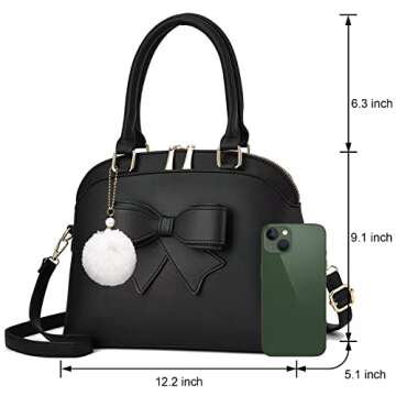 Girls Bowknot Handbag Purse Cute Leather Shoulder Bag for Women Top-handle Totes Satchel