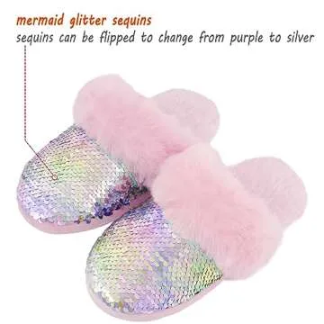 Girls Fluffy Mermaid Slippers with Sequin Design