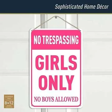 The Girls Only Sign measures 8x12 inches, making it an ideal size for doors and walls.