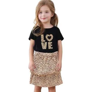 Girls Summer Outfits Two Piece Letter Print Short Sleeve Shirt Cheetah Layered Skirt Picture Day Outfits for School 6t