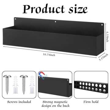 Show moreMeet the Gisafai 2 Pcs Magnetic Aerosol Spray Can Holder – your ultimate solution for keeping your spray cans organized and accessible! Designed with both functionality and style in mind, this heavy-duty magnetic toolbox bottle holder measures a generous 16.54 x 3.15 x 4.33 inches, making it the perfect addition to your workshop, garage, or crafting room. With a capacity to hold at least 6 aerosol cans, it ensures that your favorite paints, oils, and cleaning supplies are always within reach, allowing you to work efficiently and effectively.