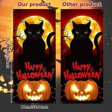 Unlike many other door decorations, the **gisgfim Halloween Party Black Cat Door Cover** stands out in both size and durability. While competitors may offer smaller, less detailed versions, this banner’s **impressive dimensions** and **vivid graphics** ensure it will be the centerpiece of your decor. Plus, made from high-quality materials, it promises durability and reusability that lesser options simply can’t match.