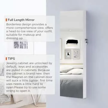 GISSAR Full Length Mirror Jewelry Cabinet, 6 LEDs Jewelry Armoire Wall Mounted Over The Door Hanging, Jewelry Organizer Storage with Lights Lockable White