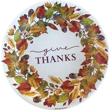 Give Thanks - Thanksgiving Paper Plates Dinnerware Set of 4, Bundle Includes Service for 20 Guests: 20 Large Plates, 20 Dessert Plates, 50 Dessert Napkins and 50 Round Napkins.