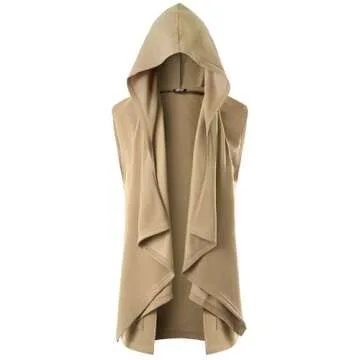 GIVON Mens Sleeveless Ruffle Shawl Collar Cardigan with Pockets / DCC035-BEIGE-L