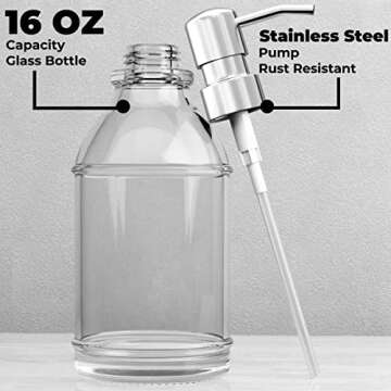 Introducing the GLADPURE Soap Dispenser 2 Pack, designed for elegant functionality and sustainability. This double set features stunning thick glass Boston round bottles that each hold up to 16 ounces of your favorite liquids, making them perfect for any room in your home or office. Crafted from high-quality, durable glass, these dispensers are safe for a variety of room-temperature daily use liquids including soaps, lotions, and essential oils. Their gorgeous, antique-ish...