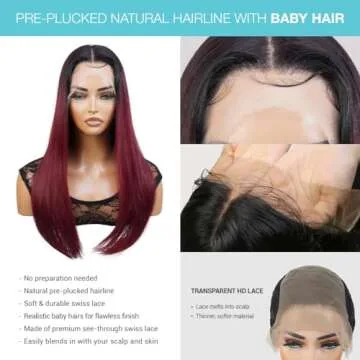 GLAM21USA HD LACE Front Wig Straight 13X6 Glueless Invisible Transparent Lace Frontal Wigs Preplucked Human Hair & Synthetic Blend Swiss-Lace Curly Long Wig - Athena (NeutralLace, OET1B/BURG)