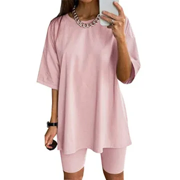 Glamaker Women's 2 Piece Tracksuit - Oversized Tee & Biker Shorts Set