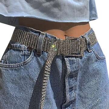 Glamaker Women's Crystal Rhinestone Chain Waist Buckle Belt Sash Waistband Accessory Silver
