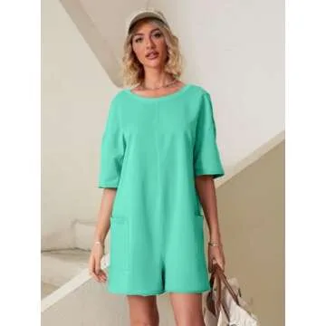 This romper is not only practical, but it's also designed to simplify your wardrobe needs. The basic design elements – crew neck, short sleeves, rolled edges, and raw hems – contribute to the relaxed feel that the modern woman craves. From running errands to date nights, it's a versatile piece that can transition effortlessly between casual and sporty while keeping you chic.
