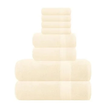 Show more Introducing the GLAMBURG Ultra Soft 8-Piece Towel Set, an exquisite combination of quality and functionality designed to elevate your bathroom experience. Each set includes 2 oversized bath towels (27x54), 2 hand towels (16x28), and 4 washcloths (13x13), all made from 100% pure ringspun cotton. This premium fabric guarantees both an incredibly soft feel and exceptional absorbency, ensuring that your towels not only look great but also perform superbly in drying.