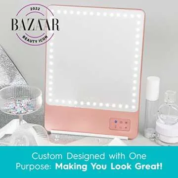 Glamcor Riki Skinny Smart Vanity Mirror with HD LEDs, Magnifying Mirror Attachment, Phone Holder and Bluetooth Control (Rose Gold, 5X Magnification)