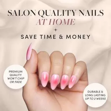 Show more Introducing the Glamnetic Press-On Nail Kit – your ultimate beauty secret for achieving stunning, salon-quality nails from the comfort of your own home! These high-fashion press-ons, especially the Blushing Aura variant, combine an exquisite short almond shape with a charming light pink base and a unique darker pink ombre center design that seamlessly enhances your natural beauty. Perfect for any occasion – be it a casual brunch or a glamorous night out – these nails make a statement without the salon price tag.
