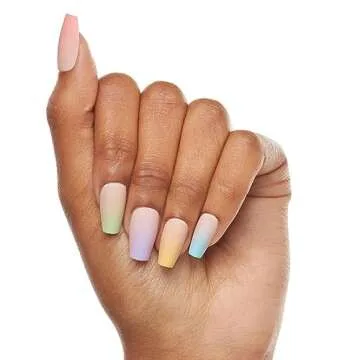 Show more Discover the magic of flawless nails with the Glamnetic Press On Nails in the stunning Double Rainbow design. Featuring a lavish glossy finish and a perfect short coffin shape, these reusable nails are designed for those who want salon-quality nails without the hefty price tag. Each set comes with 30 nails in 12 different sizes, ensuring a fit for every nail type. The nails are easy to apply and remove, making them an ideal choice for anyone who loves to switch up their look effortlessly.