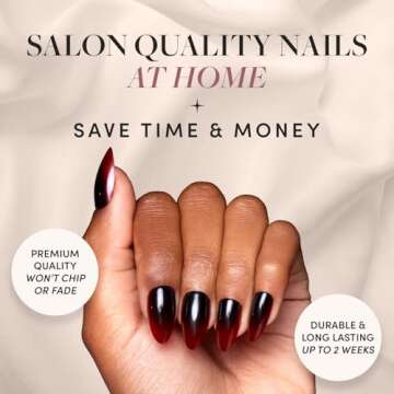 - Stunning Ombre Design: The captivating black-to-blood-red ombre effect paired with semi-transparent tips creates a truly dramatic look.