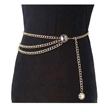 Glamorstar Multilayer Metal Waist Chain Dress Belts Metal Belt for Women