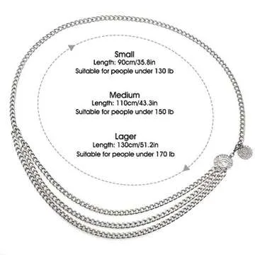 Durability meets style: Don’t let the lightweight feel fool you; this waist chain is designed to withstand regular wear without compromising on aesthetics. It's important to note that the fit will vary based on your waist size, so be sure to measure before purchase to avoid disappointment.