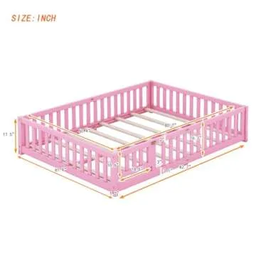 Show moreIntroducing the GLANZEND Queen Size Montessori Floor Bed for Toddlers – a beautifully crafted and thoughtfully designed bed that transforms your child’s sleeping experience into a world of safety, independence, and creativity. This floor bed features removable wood slats, which elevate the mattress off the ground to keep your child’s sleeping area clean and dry. When the slats are removed, they allow for seamless access, creating a playful small games room right on the floor. With a delightful pink finish, this bed is the perfect addition to your child's room, inviting exploration and imagination.