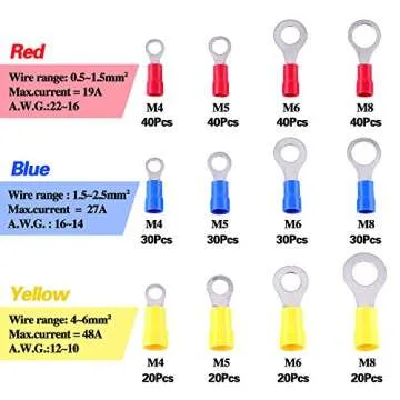 Glarks 360pcs 22-16/16-14/12-10 Gauge Mixed Quick Disconnect Electrical Insulated M4 / 5/6 / 8 Ring Crimp Terminals Connectors Assortment Kit