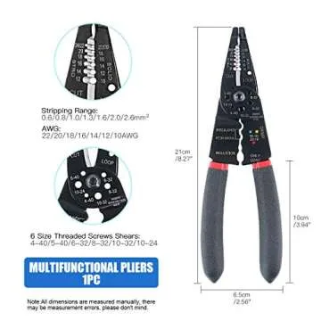 Glarks 8" 10-22 AWG Multifunction Wire Stripper/Crimper/Cutter and 175Pcs Twist Nuts Caps Electrical Wire Connectors Screw Terminals with 5Pcs Electrical Tape Assortment Set