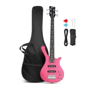 GLARRY 36-Inch Electric Bass Guitar Beginner Kit - Pink