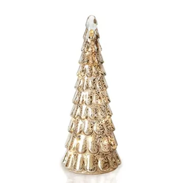 Illuminate your holiday season with the Glasburg Silver Light Up Glass Christmas Tree. This exquisite figurine combines the timeless beauty of mercury glass with the warm glow of LED lights, creating a stunning centerpiece for any tabletop or mantel. The tree features a sophisticated silver finish that reflects light beautifully, making it a perfect addition to your Christmas decorations. With its built-in timer function, it automatically turns on for 6 hours and off for 18 hours, ensuring your home is always...