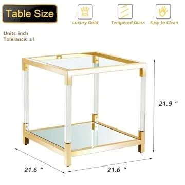 Glass End Table Modern Gold Living Room Table Acrylic Mirror Sofa Side Table 1 Pcs, Luxury Stainless Steel Square Clear Tempered Glass Small Corner Table