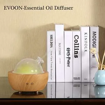 Glass Essential Oil Diffuser with Real Wood Base, 200ml Ultrasonic Aromatherapy Diffuser, Glass Dome Humidifier, LED Light Available in 7 Colors, Auto Shut-Off for Home Office Bedroom Gift