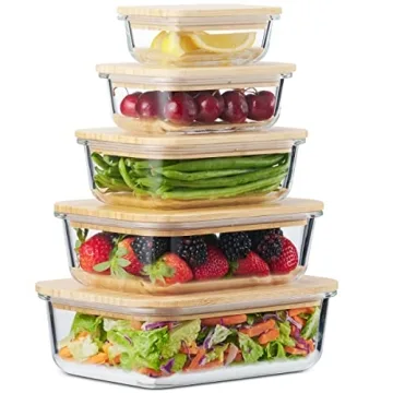 Show more Introducing the premium Glass Food Storage Containers set from our brand, meticulously crafted to cater to the modern health-conscious consumer. In response to growing concerns about microplastics and toxic materials, this set offers a stylish yet functional solution for your food storage needs. Made from high-quality, BPA FREE glass, these containers guarantee your meals stay fresh, while eliminating exposure to harmful chemicals. Each container features a bamboo lid adorned with reliable rubber seals that ensure airtight freshness, making them perfect for meal prepping, storing leftovers, or even delivering culinary gifts.