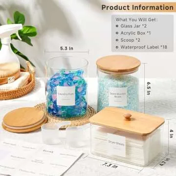 The jars have a generous capacity of 80 oz (0.6 gal), perfect for various laundry essentials.