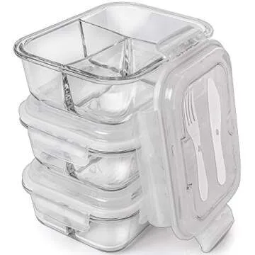 Glass Meal Prep Containers 3 Compartment (3 - Pack)
