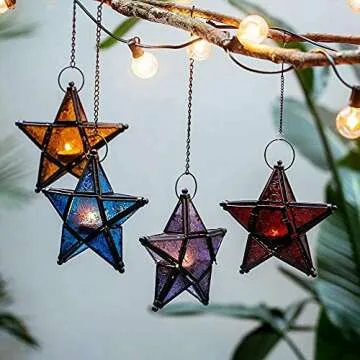Measuring at an ideal size of 20cm x 5cm, this hanging lantern is designed specifically for both real tealights and battery-operated tea lights, making it versatile for any occasion. Whether you're looking to illuminate your living room, garden, or patio, this decorative piece is guaranteed to make an eye-catching impression. The intricate design and vibrant colors create a warm glow, setting the perfect ambiance for a cozy evening with friends or family.