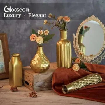 Glasseam Gold Glass Vase, 8pcs Cylindrical Home Decor, Antique Art Deco Style, Holds Water, Gold Electroplating Finish, Living Room Kitchen Bathroom Bedroom Decor, Table Centerpieces