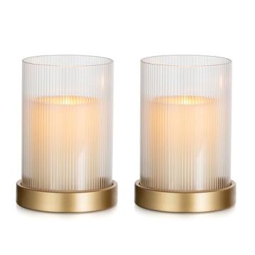 Elevate Your Space with Glasseam Hurricane Glass Candle Holders - Embrace sophistication and style with the Glasseam Hurricane Glass Candle Holders. This stunning set of 2 features ribbed glass cylinder covers elegantly paired with sturdy metal trays, creating the perfect ambiance for any occasion. With their minimalistic design inspired by classic lampshades, these candle holders illuminate your space with a soft, welcoming glow, making them an ideal addition to your home decor!