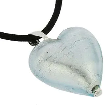 GlassOfVenice Murano Glass Heart Pendant - Silver Ice