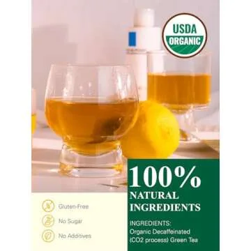 Show moreThe GLDNT Organic Decaf Green Tea Bags are here to brighten your day with their exquisite flavor and remarkable health benefits. Crafted from premium organic steamed green tea, each bag is a treasure of super antioxidants that not only enhances your well-being but also keeps your taste buds delighted. Perfect for anyone looking to enjoy the rich, slightly vegetal, and smooth flavor of green tea without any bitterness, these specially formulated decaf tea bags offer an experience like no other. Enjoy them hot for a warming morning cleanse or iced for a refreshing afternoon pick-me-up.