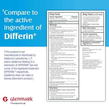 Glenmark Therapeutics Adapalene Gel 0.1% Acne Treatment, Topical Retinoid Cream for Face, Helps Clear and Prevent Acne and Clogged Pores, 15 Gram Tube