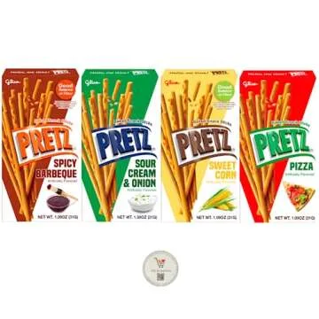 Glico Pretz Baked Pretzel Snack Sticks, 1.09 oz (Pack of 4) (Variety - Sweet Corn, BBQ, Pizza, Sour Cream & Onion)